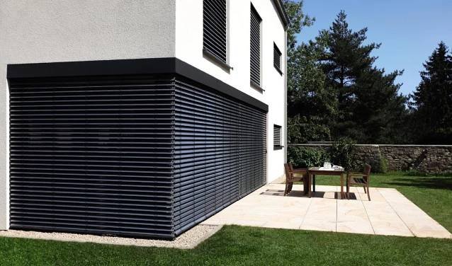 Exteriérová stínící technika dotváří prostředí z pohledu světelných a tepelných efektů a je významnou součástí domu z hlediska úspor energie. Exteriérové žaluzie splňují stínící a bezpečnostní funkci, v další řadě dominují i jako výrazný prvek v architektuře.